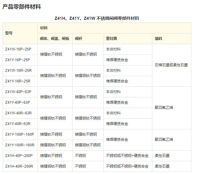 Z41H、Z41Y、Z41W 不鏽鋼(gāng)閘閥:手(shou)動、法蘭(lan)連接形(xing)式、明杆(gan)楔式剛(gang)性單閘(zha)闆,閥座(zuò)密封面(mian)材料為(wei)不鏽鋼(gāng),公稱壓(yā)力 PN16~PN200,閥體(tǐ)材料為(wéi)不鏽鋼(gāng)的閘閥(fá)。